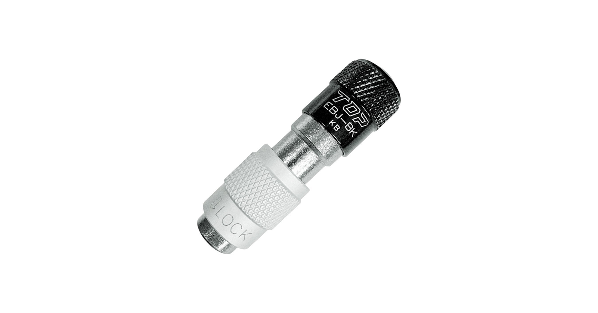超おススメ! TOPの「ワンタッチビットジョイント」です。下穴を開けるときに⊕ドライバービットを外さずに、その上にこのビットジョイントを差し込むだけで下穴ドリルが使えるようになります。取り外しもシルバーの部分を引っ張るだけです。