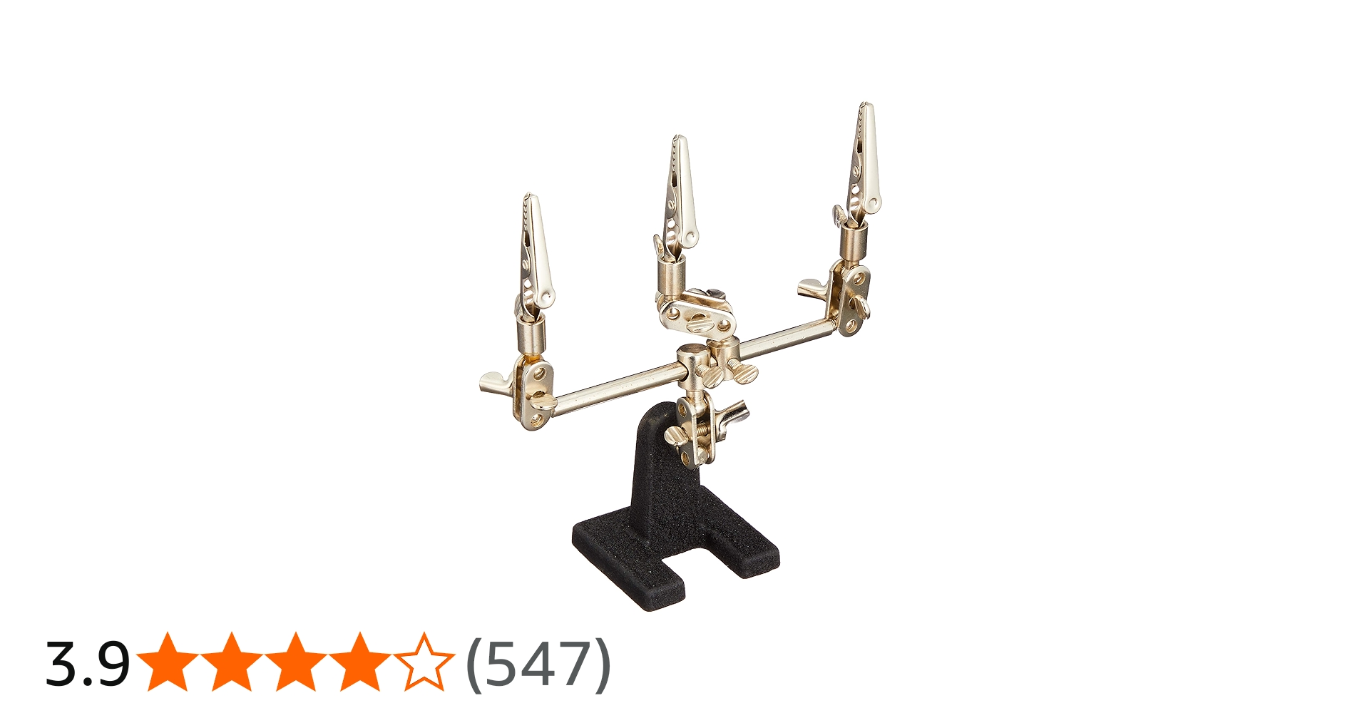 さあ、アームの溶接です。位置決めするために電子工作に使うツールクリッパーの助けを借ります。